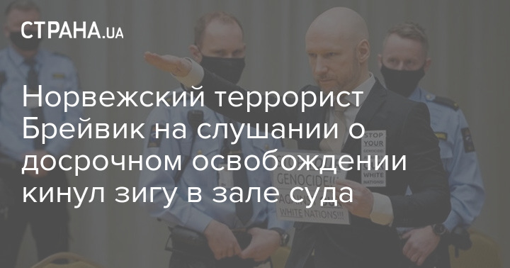 Норвежский террорист Андерс Брейвик, убивший более 10 лет назад 77 человек, пришел на слушание о своем досрочном освобождении и показал судье нацистское приветствие.