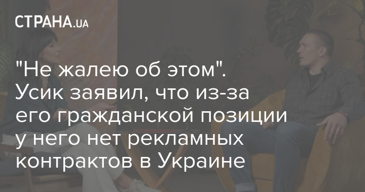 Украинский чемпион Александр Усик рассказал, что у него нет рекламных контрактов в Украине из-за гражданской позиции. При этом боксер заявил, что не жалеет из-за принципиальности в этом вопросе.