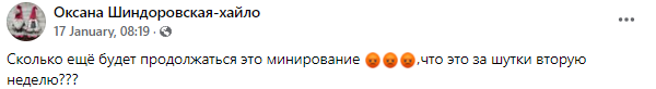 "Сколько еще будет продолжаться это минирование, что это за шутки вторую неделю???" - недоумевает Оксана Шиндровская-хайло из Черкасс.