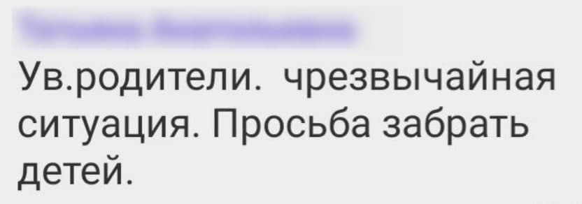 "Ув. родители. чрезвычайная ситуация. Просьба забрать детей".