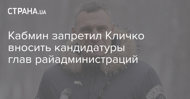 Кабинет министров запретил председателю Киевской городской государственной администрации Виталию Кличко вносить кандидатуры глав районных администраций на назначение президентом Владимиром Зеленским.