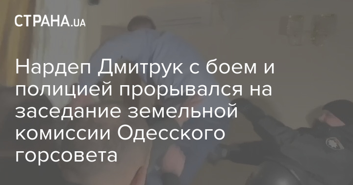В сети появилось видео того, как нардеп от межфракционного объединения Разумкова Артем Дмитрук прорывается на заседание земельной комиссии Одесского горсовета, куда его не хотели пускать. По его мнению, проведение заседания комиссии было незаконным - комиссия нелегитимная и собралась с нарушением закона.