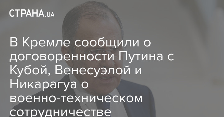 Глава российского Министерства иностранных дел Сергей Лавров заявил, что президент РФ Владимир Путин договорился с лидерами Кубы, Венесуэлы и Никарагуа - Мигелем Диас-Канелем, Николасом Мадуро и Даниэлем Ортегой - о развитии сотрудничества во всех областях, включая военно-техническое сотрудничество.