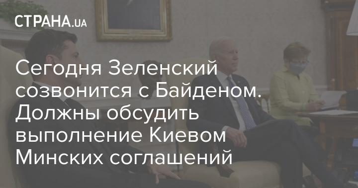 Сегодня Зеленский созвонится с Байденом. Должны обсудить выполнение Киевом Минских соглашений