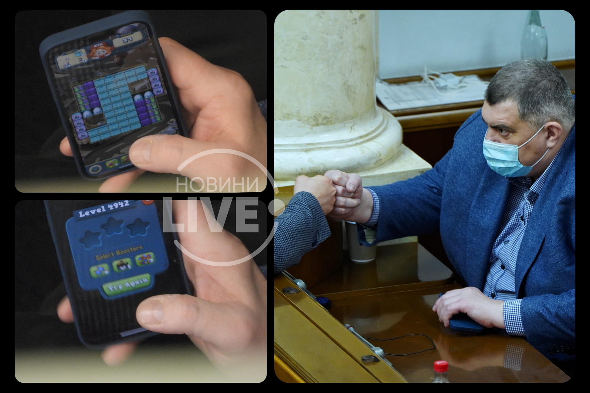 Народный депутат от "Слуги народа" и бывший актер "Квартал 95" Юрий Корявченков (Юзик) во время выступления премьер-министра Дениса Шмыгаля играл в мобильную игру и на шаг приблизился к 5 000 уровню.