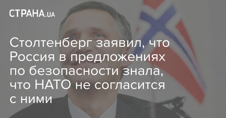 Генеральный секретарь НАТО Йенс Столтенберг заявил, что Североатлантический альянс дал понять о своей готовности к диалогу с Российской Федерацией. В то же время Столтенберг считает, что Россия, когда направляла свои предложения по безопасности, понимала, что НАТО с ними не согласится.