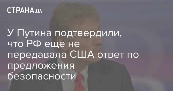 В Кремле подтвердили, что Россия еще не давала ответа США на предложения Вашингтона по безопасности, но передала свои соображения по некой другой проблеме. Срок, в который будет готов ответ РФ, зависит от президента Владимира Путина.
