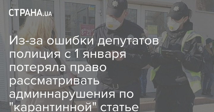 Из-за невнимательности депутатов при подготовке законопроектов "слуги народа" случайно отобрали у полиции право рассматривать административные дела о нарушении карантина по ч. 2. ст. 44-3 Кодекса об административных нарушениях.