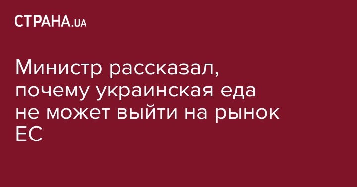 Министр аграрной политики и продовольствия Украины Тарас Кутовой назвал причины, которые мешают выходу украинских продуктов на рынок ЕС. Об этом сообщает "Интерфакс".