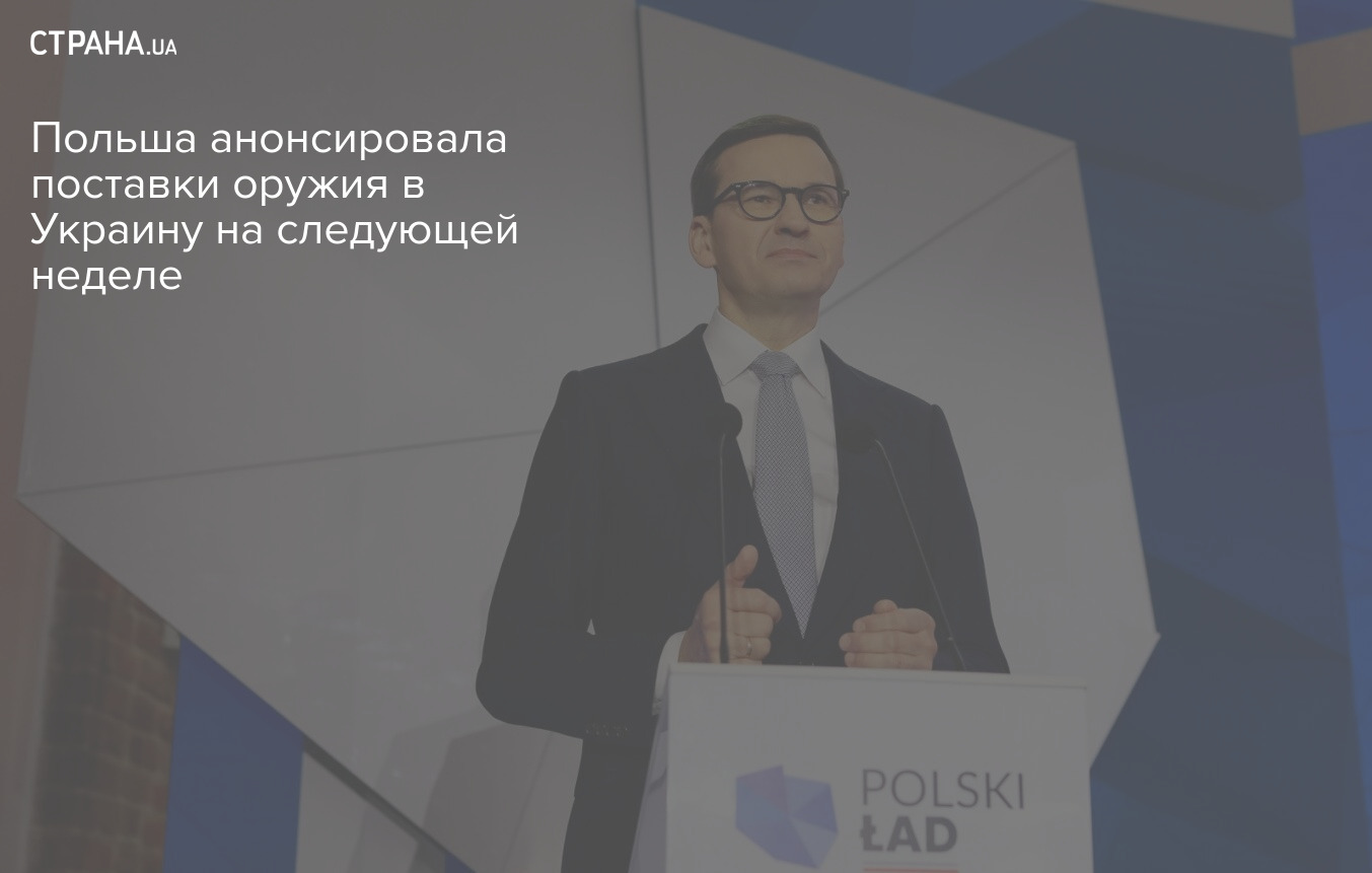 Премьер-министр Польши Матеуш Моравецкий заявил о том, что со следующей недели начнутся поставки оружия из Польской Республики в Украину.