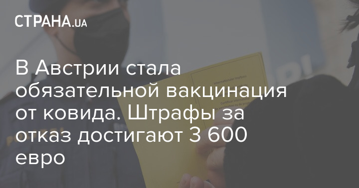 В Австрии стала обязательной вакцинация от ковида. Штрафы за отказ достигают 3 600 евро