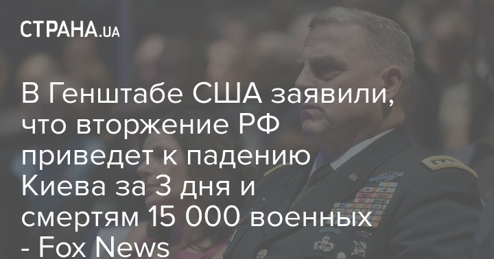 Глава Объединенного комитета начальников штабов Соединенных Штатов генерал Марк Милли не согласился с прогнозами западных СМИ, что в случае "вторжения России в Украину" Киев падет за два дня. По его мнению, столица Украины падет за три дня.
