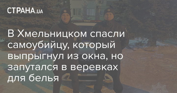 Хмельницкие патрульные спасли мужчину, пытавшегося выпрыгнуть из окна 7-го этажа. Однако неудачливый самоубийца запутался в веревках для белья и повис на них этажом ниже.