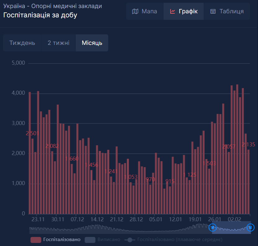 А вот с госпитализацией не все так радужно. В январе, с приходом "Омикрона", людей в больницы стало поступать все больше и больше. И на сейчас в сутки госпитализируют от двух до четырех тысячи в день - столько было в конце ноября, самого тяжелого месяца в минувшем году.