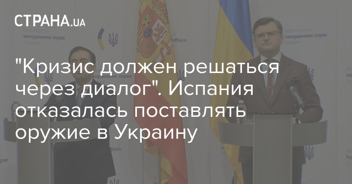 Министр иностранных дел, ЕС и сотрудничества Испании Хосе Мануэль Альбарес Буэно заявил, что его страна не будет поставлять оружие Украине, так как в настоящее время нужно сосредоточиться на дипломатических способах решения кризиса.