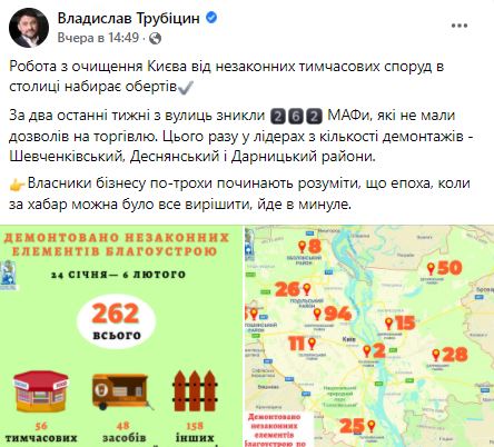 Очень много постов посвящено сносу незаконных МАФов и киосков.