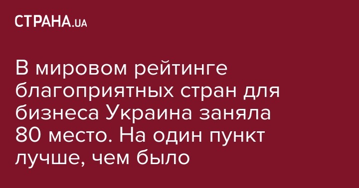 В мировом рейтинге благоприятных стран для бизнеса Украина заняла 80 место. На один пункт лучше, чем было