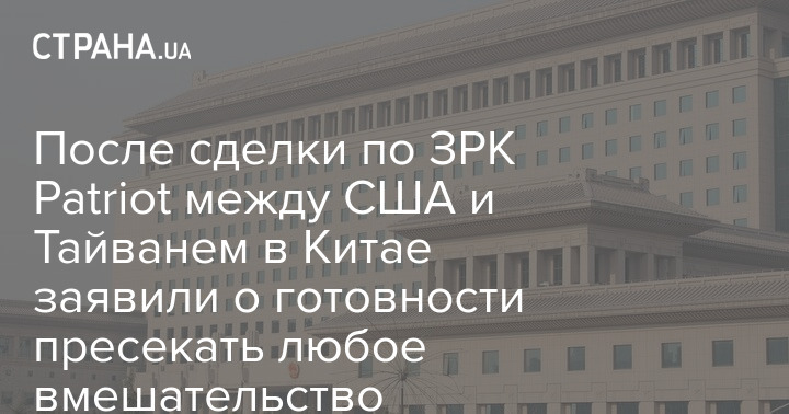 После сделки по ЗРК Patriot между США и Тайванем в Китае заявили о готовности пресекать любое вмешательство