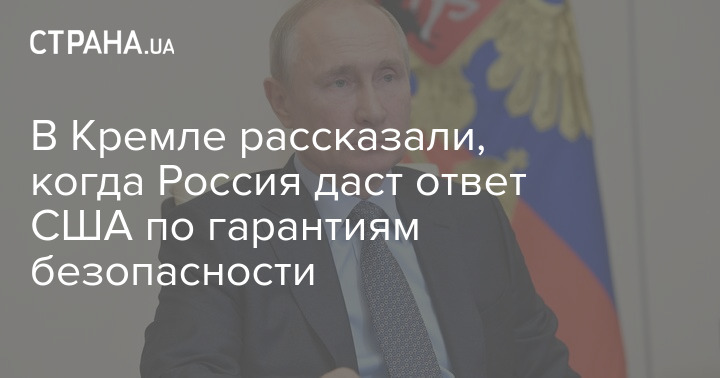 В Кремле рассказали, когда Россия даст ответ на реакцию США по гарантиям безопасности. По словам пресс-секретаря российского президента Дмитрия Пескова, это произойдет тогда, когда решит президент РФ Владимир Путин.