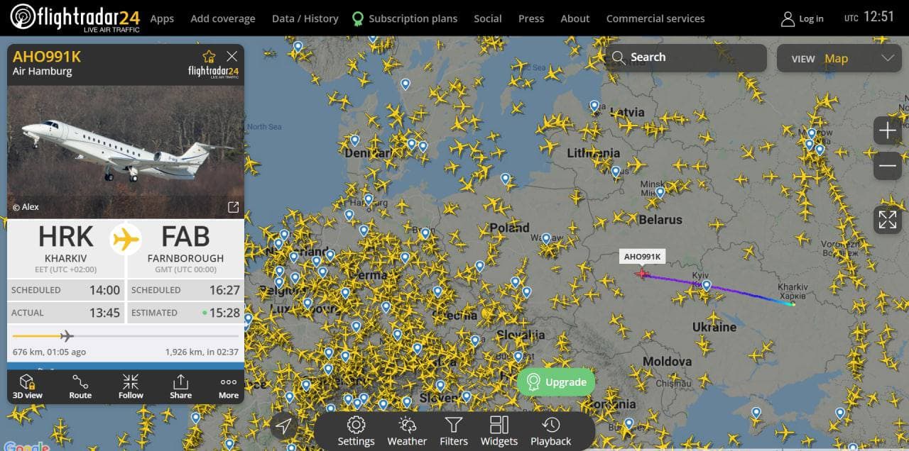 Это подтверждают также данные Flightradar - его борт AH0991K в 12:51 покидал территорию Украины. К настоящему времени он уже приземлился в аэропорту близ Лондона.