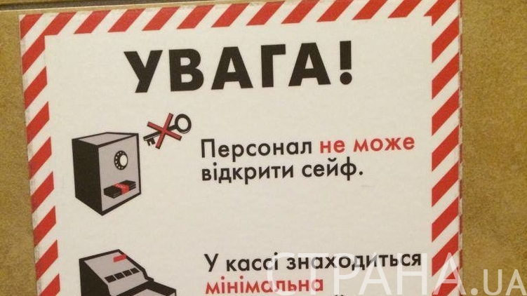 "У нас уже давно висят этим объявления. Сейчас в Украине повысился уровень преступности, так что наша компания предупреждает потенциальных злоумышленников, что не стоит даже пытаться нападать", - сказал нам кассир.