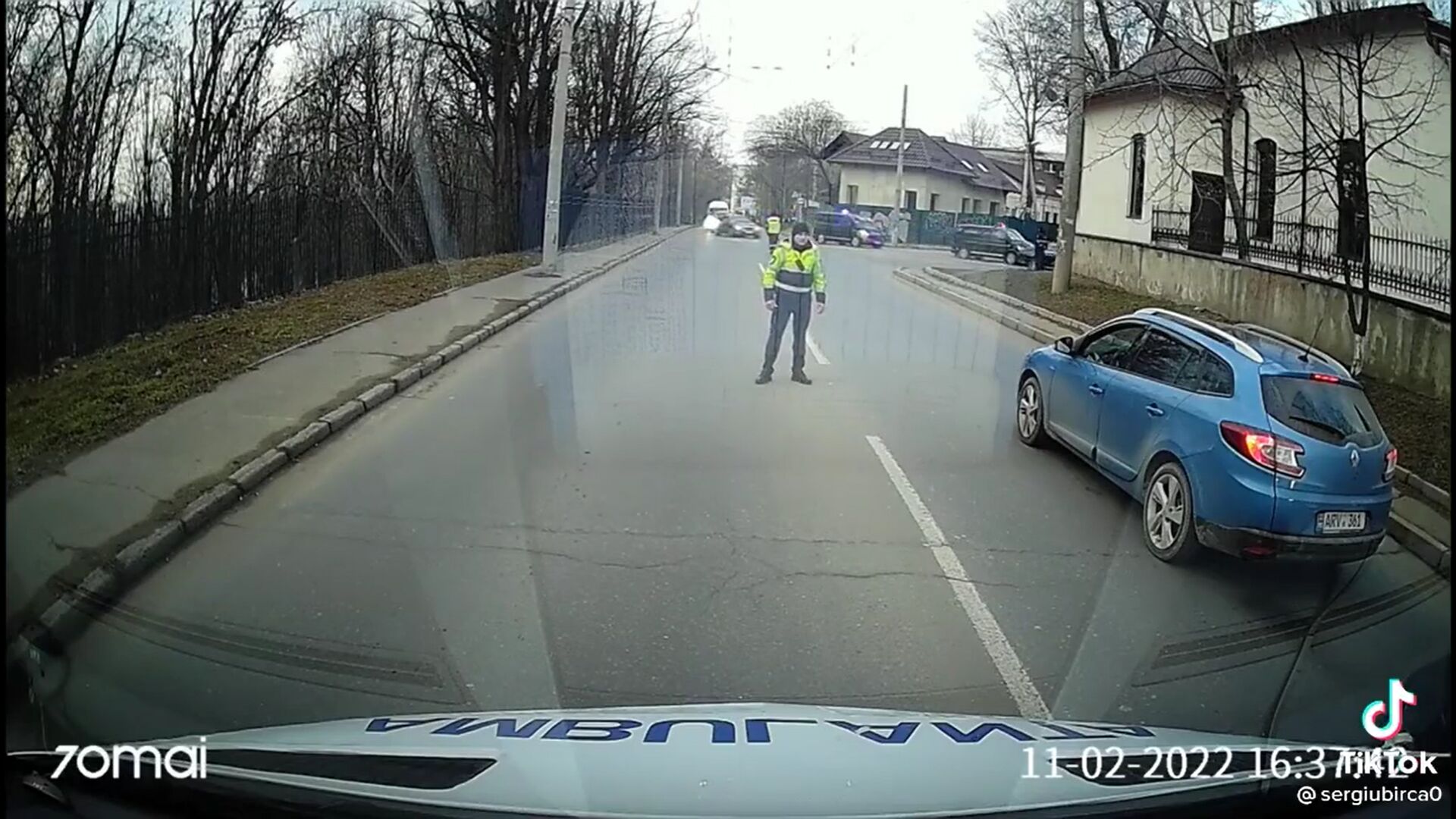 "Скорая" с включенными сиренами и мигалкой, которая, вероятно, спешила на вызов, однако были остановлена полицейский. После того, как "карета" медиков остановила, на перекрестке проехала колонна румынских министров, которые спешили на совместное заседание со своими молдавскими коллегами.