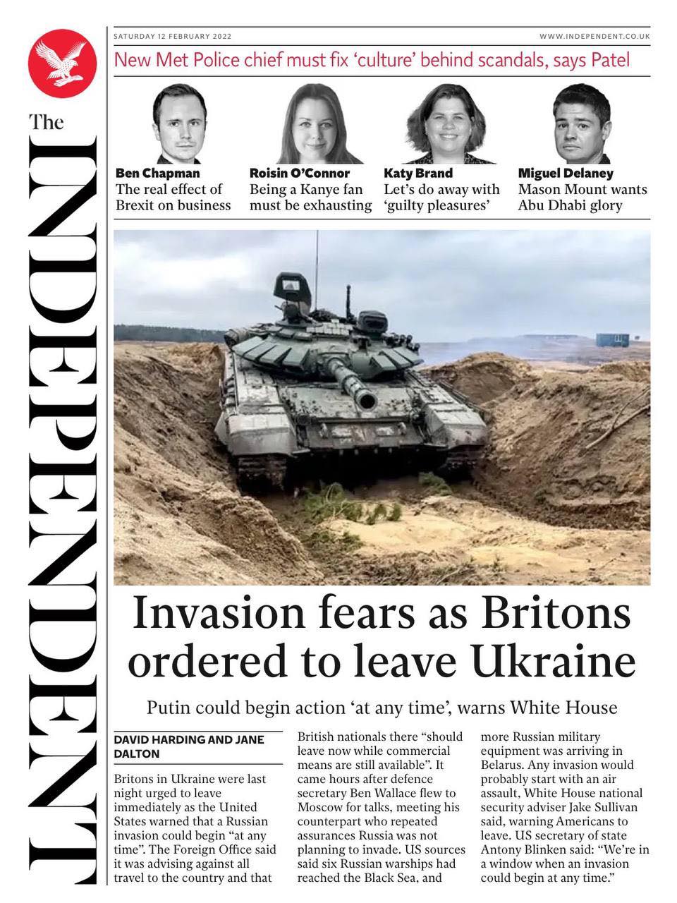 "Страх вторжения в то время как британцам приказали покинуть Украину", - пишет Independent