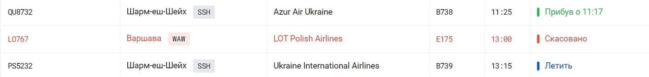 Так, в Киеве в аэропорту "Борисполь" отменили прибытие рейса компании KLM (а также квота мест на нем других авиакомпаний).