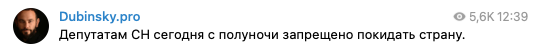 "Депутатам СН с полуночи запрещено покидать страну", - написал он.