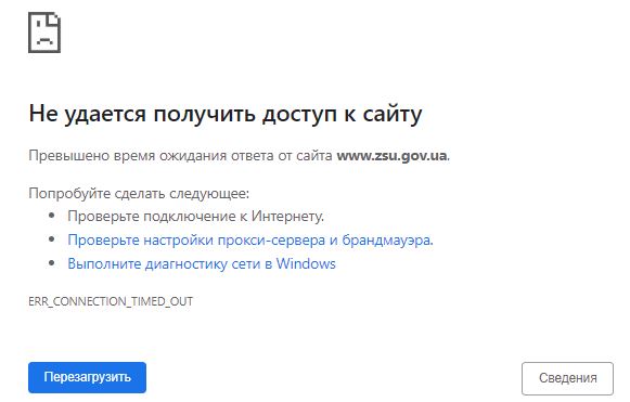 Престал загружаться и официальный сайт Вооруженных сил Украины.