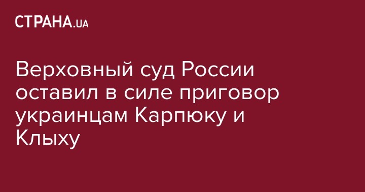 Верховный суд России оставил в силе приговор украинцам Николаю Карпюку и Станиславу Клыху,которых обвиняют в участии в боевых действиях на стороне боевиков во время Первой и Второй чеченских войн. Об этом сообщает "Медиазона".