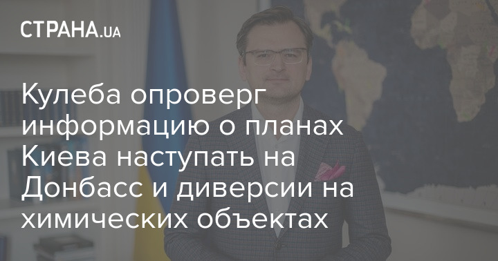 Министр иностранных дел Дмитрий Кулеба опроверг информацию о планах Украины наступать на Донбасс, а также планы по диверсиям на химических объектах.