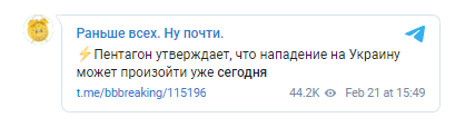 Министерство обороны США утверждает, что нападение на Украину может произойти уже в понедельник, 21 февраля.
