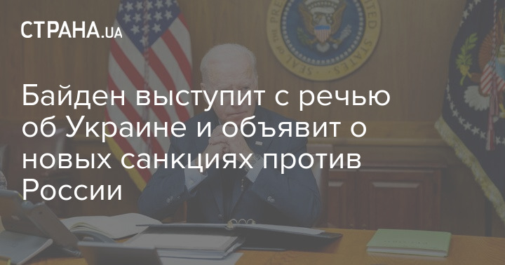 Президент США Джо Байден сегодня вечером выступит в Белом доме с речью, посвященной ситуации вокруг России и Украины. При этом он объявит о санкциях в ответ на "развертывание войск РФ" в "ЛДНР", информацию о котором Москва уже опровергла