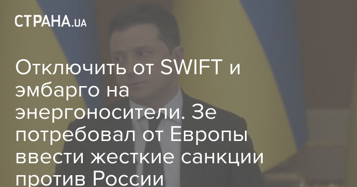 Зеленский потребовал от лидеров стран Европейского Союза ввести действительно жесткие санкции против России - отключить от SWIFT и наложить эмбарго на импорт российских энергоносителей.
