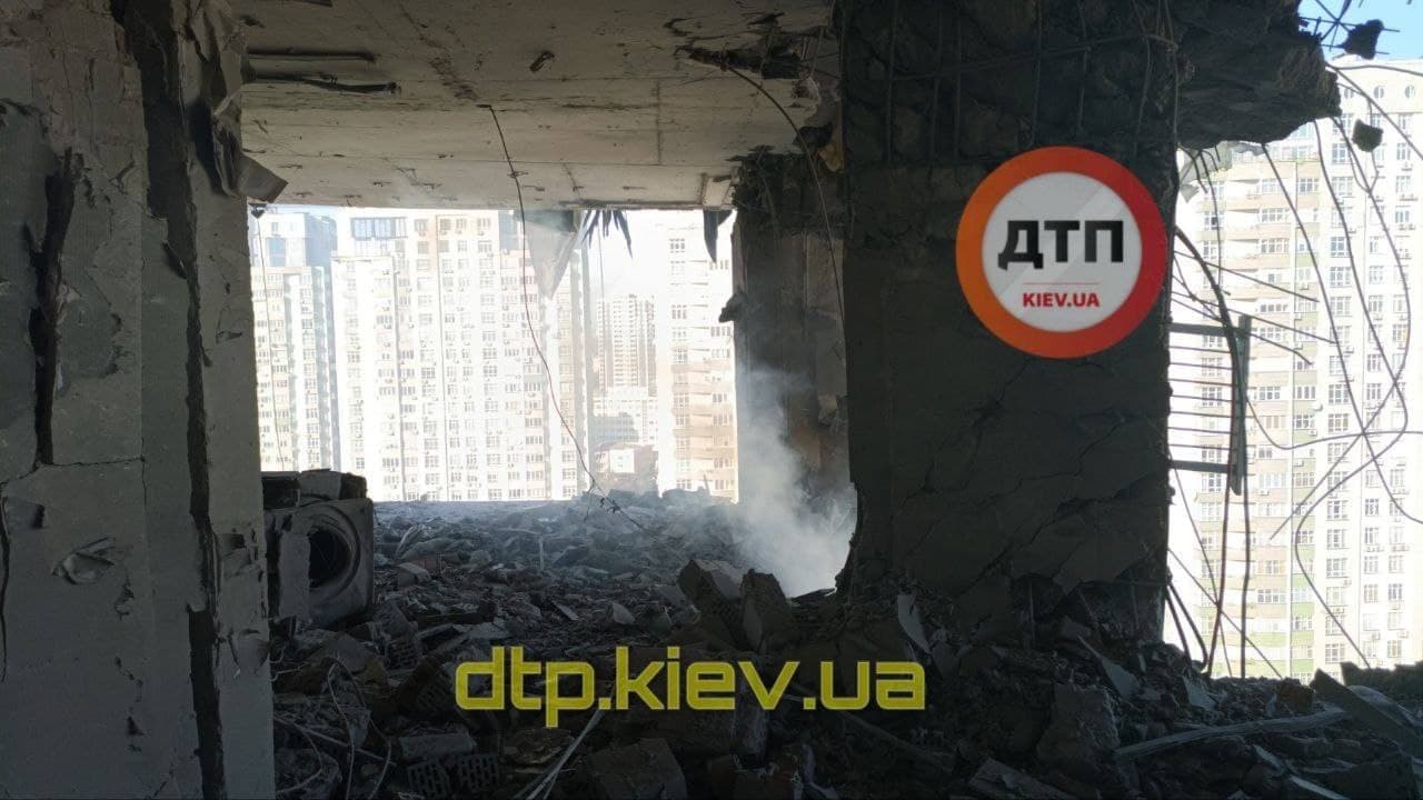 09:15 Киев. Так выглядит сейчас дом, на которые упали остатки сбитой ракеты "калибр".
