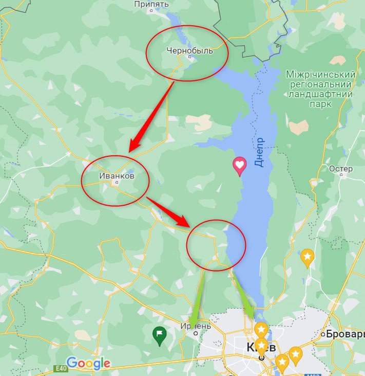 08:00 Российские войска в Дымере (30 километров от Вышгорода).