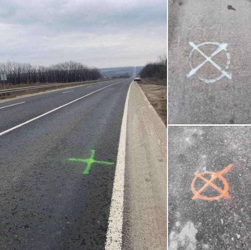 "Эти значки, которые используют вражеские войска, украинцы должны зарисовывать или присыпать землей, грязью, или заливать смолой. Также рекомендуем сообщать в полицию об этих отметках посредством горячей линии 102", - сообщают в Укравтодоре.