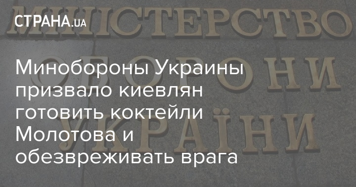 Минобороны Украины призвало киевлян готовить коктейли Молотова и обезвреживать врага