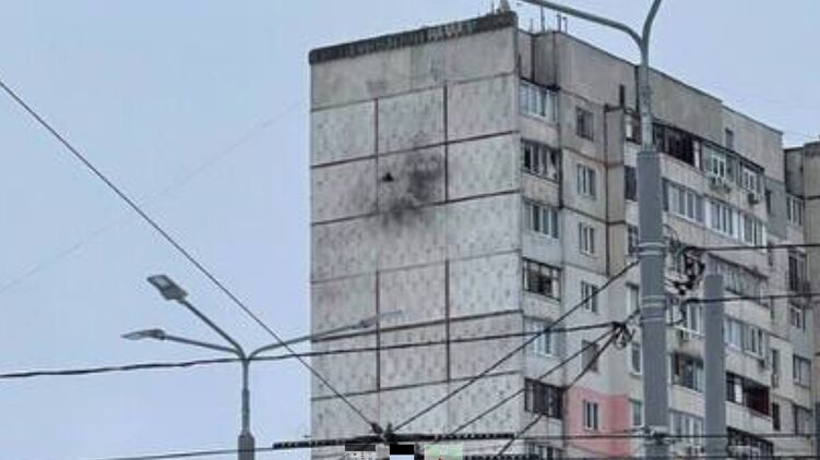 Так, снаряд попал в многоэтажку на улице Натальи Ужвий. На фасаде панельного дома видна пробоина, в здании разбиты стекла.