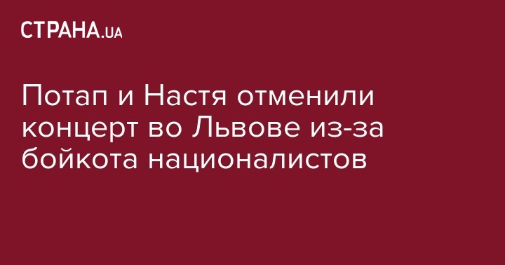 В субботу, 29 октября, во Львове решили отменить концерт известного коллектива исполнителей Потапа и Насти из-за угроз провокаций националистов. Об этом сообщает "Пресса Украины".