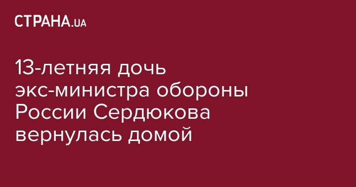 Тринадцатилетняя дочь экс-министра обороны России Анатолия Сердюкова вернулась домой. Об этом сообщает агентство городских новостей Москва.
