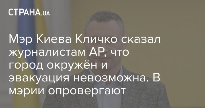Мэр Киева Виталий Кличко сообщил, что Киев окружён, и поэтому эвакуация населения из столицы невозможна.