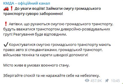 07:27  Киевская мэрия сообщает, что с 8 часов утра можно уже выходить на улицу, будут открыты магазины и заработает метро (правда, поезда будут ходить реже).