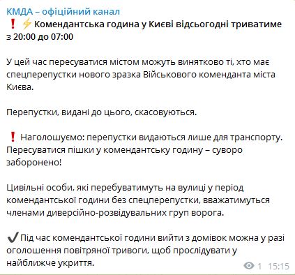 08:49  В Харькове комендантский час сегодня начнётся в 15.00 и продлится до 6 утра завтрашнего дня.