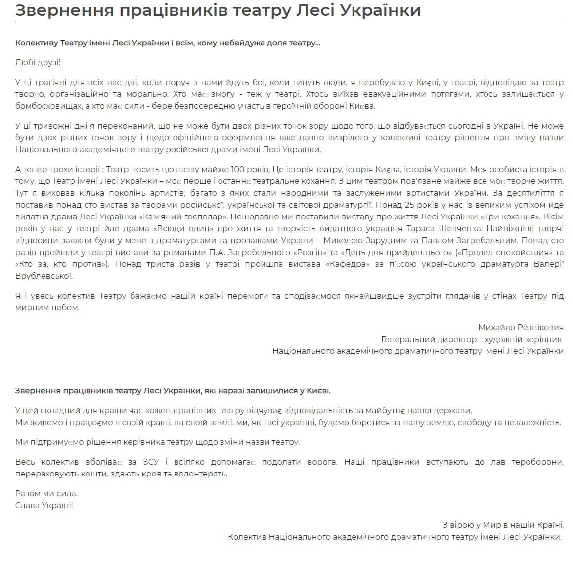22:31 Национальный академический театр русской драмы имени Леси Украинки в Киеве решил переименоваться в Национальный академический драматический театр имени Леси Украинки.