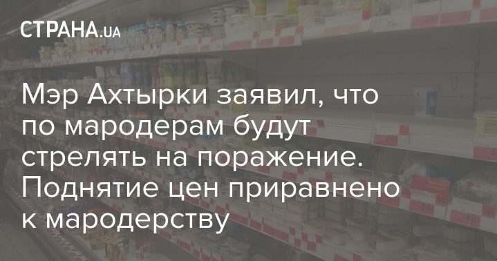 В городе Ахтырка, что в Сумской области, за мародерство будут расстреливать на месте а поднятие цен на товары будет рассматриваться как мародерство.
