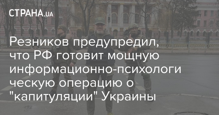 Министр обороны Украины Алексей Резников сообщил, что Россия готовит масштабную информационно-психологическую операцию и массово публикует фейковые сообщения о том, что украинские власти якобы бы согласились на капитуляцию.