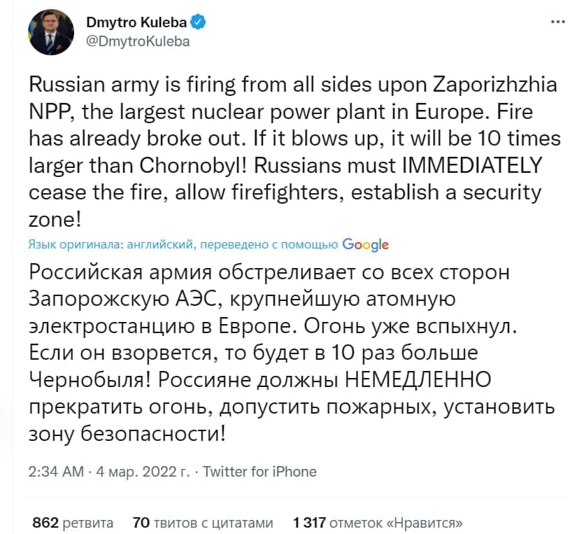 17:38 США не зафиксировали каких-либо радиоактивных утечек на Запорожской АЭС — сообщает Пентагон.