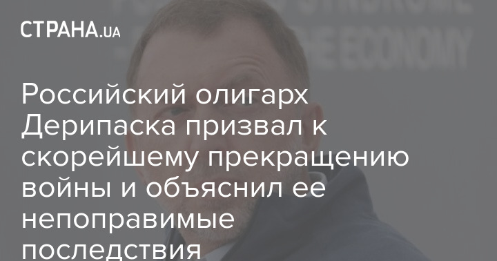 Российский олигарх Олег Дерипаска призвал к скорейшему прекращению войны в Украине и объяснил, к каким непоправимым последствиям может привести затягивание военных действий.